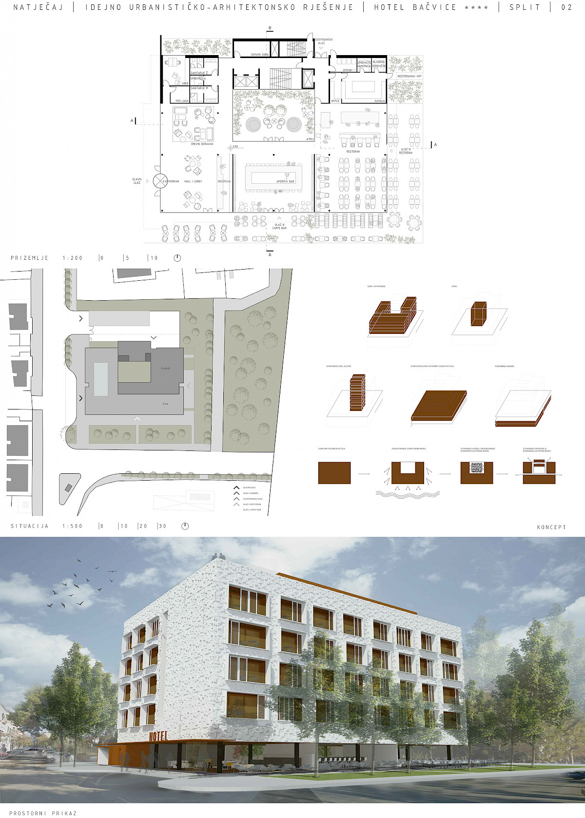 Dobivanje najboljeg idejnog urbanističko - arhitektonskog rješenja za izgradnju hotela 4* na čest. zem 9629 K.O. Split unutar gradskog predjela Bačvice u Splitu, koje će poslužiti kao podloga za dobivanje akata za izgradnju istog.