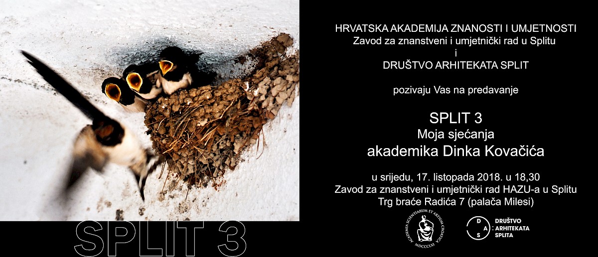 HRVATSKA AKADEMIJA ZNANOSTI I UMJETNOSTI (Zavod za znanstveni i umjetnički rad u Splitu) i DRUŠTVO ARHITEKATA SPLIT pozivaju Vas na predavanje: