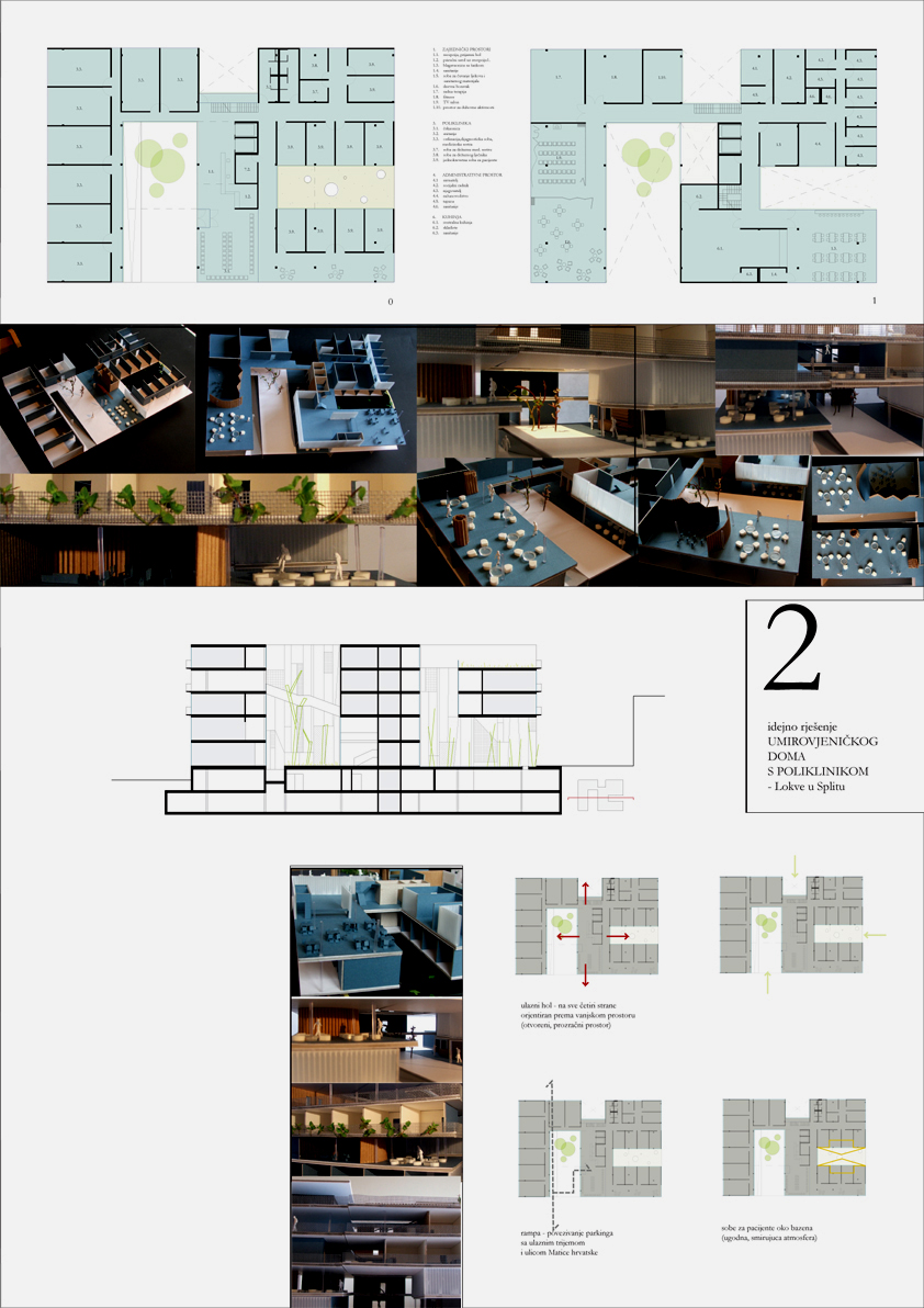 Rad je uspješno odgovorio na većinu programskih zahtjeva i kontekst specifične lokacije. Vještom dispozicijom volumena polikliničkog i smještajnog dijela stvoren je arhitektonski sklop visoke razine fleksibilnosti.