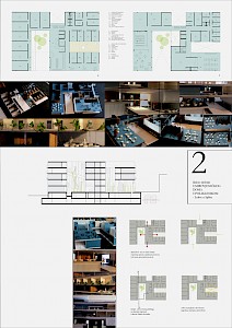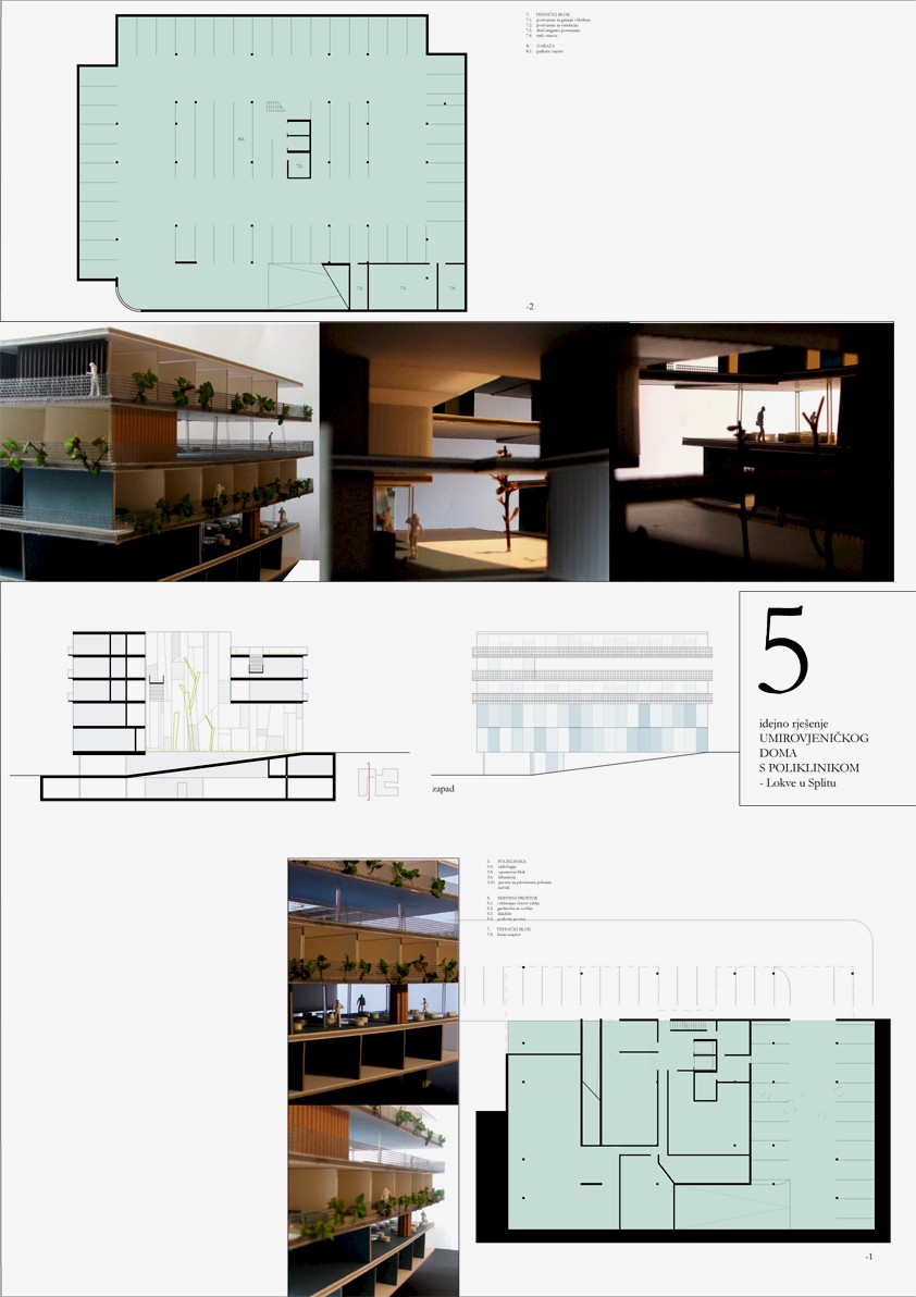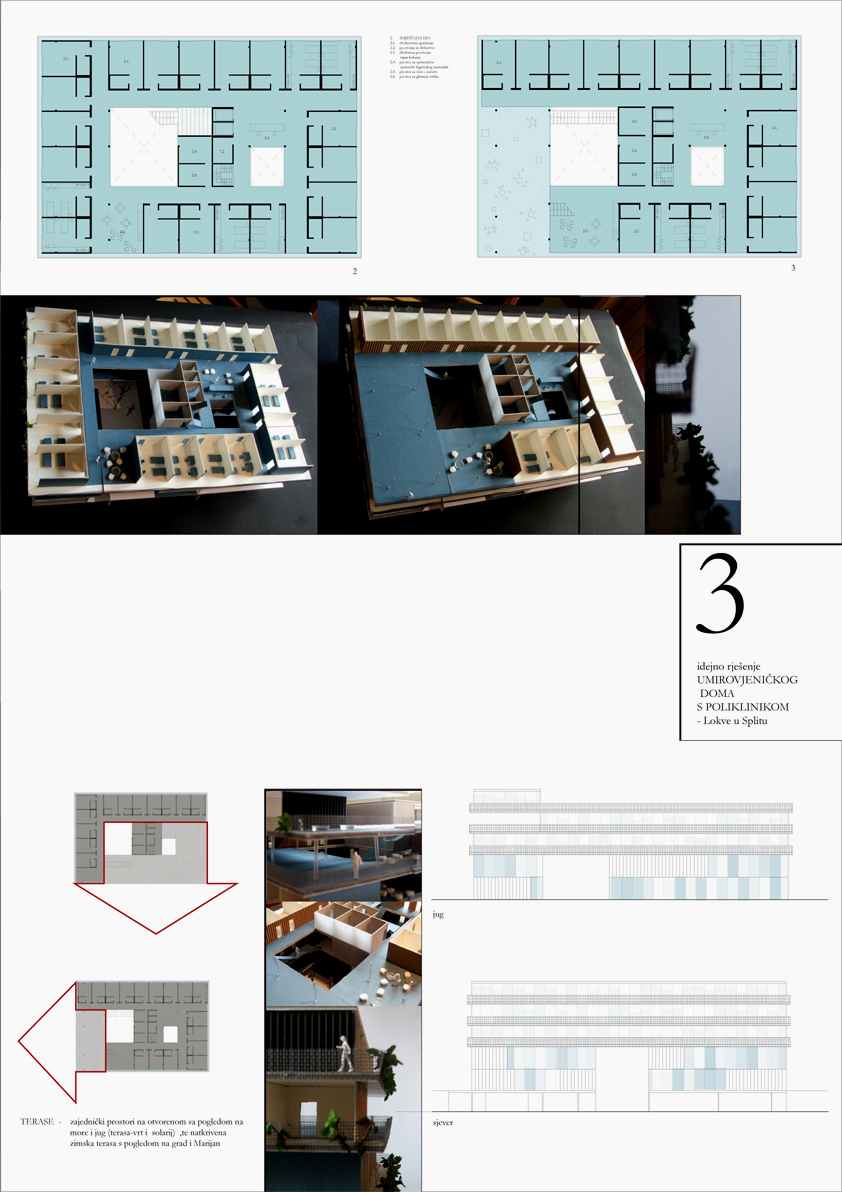 Rad je vrlo detaljno interpretirao programske odrednice sa naglaskom na poliklinički dio sklopa. Međutim, zgušnjavanjem pojedinih sadržaja nije ostvarena potrebna jasnoća, posebice u horizontalnim komunikacijama i zajedničkim prostorima. Ostvarena je kvalitetna dispozicija i orijentacija pješačkih pristupa i ulaza. S druge strane nejasan je i nelogičan tretman vanjskog parkiranja i vrlo strogo pozicioniranje isključivo jedne jezgre vertikalne komunikacije. Oblikovanjem se nastojalo reinterpretirati tema stambenih blokova u okruženju, što je ocjenjivački sud ocijenio kao nedovoljno ambiciozan pristup.