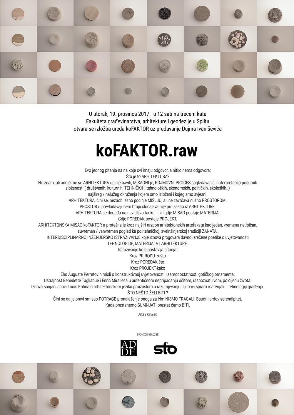 Obavijesti (DAS)Zatvaranje izložbe koFAKTOR.rawPozivamo Vas na zatvaranje izložbe koFAKTOR.raw ureda koFAKTOR u petak u 13:00 sati na trećem katu Fakulteta građevinarstva, arhitekture i geodezije u Splitu.20.12.2017 Preuzmi:POZIVNICA